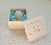 「うみたてたまご」Bタイプは、桐の木でできた可愛らしい たまごの形のへその緒ケースです。